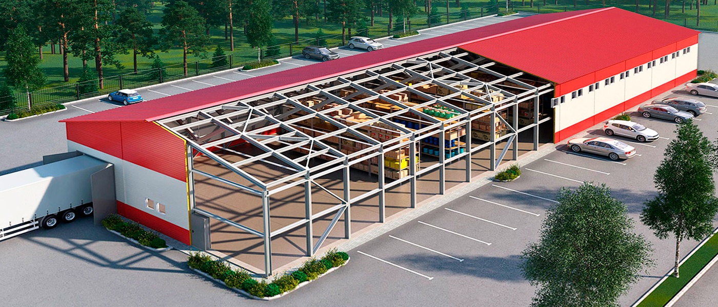 Будівництво складів здійснюється з легких металевих конструкцій, сендвіч-панелей. Влаштування доріг, вбудовування вікон, дверей, розведення інженерних мереж проводиться окремо, в рамках індивідуального проекту. Швидкомонтовані складські комплекси коштують менше, ніж монолітні будівлі. Їх набагато частіше замовляють через: