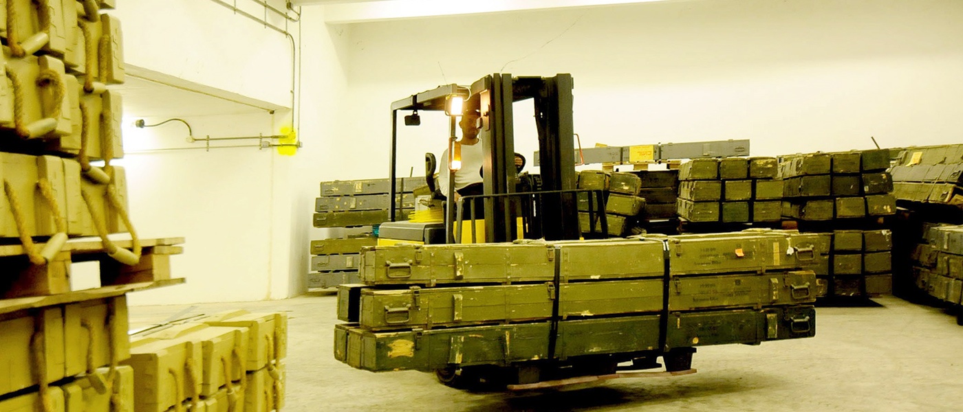 Будь-який склад, де виконується зберігання боєприпасів, може бути захищений від проникнення сторонніх осіб дротяним огородженням. Від поля складського комплексу, де виконується підрив снарядів, до житлових будівель, що окремо стоять, автотрас, залізниць, майданчики для сортування має бути відстань мінімум в 1,5 км. При цьому від населеного пункту склад повинен розташовуватися на відстані 3 км. Крім того, вертолітний майданчик розміщується від техтериторії та сортувальної зони на відстані 1,2 км. Під час проектування також необхідно передбачити заборонену зону навколо складу, ширина якої буде щонайменше 400 метрів.